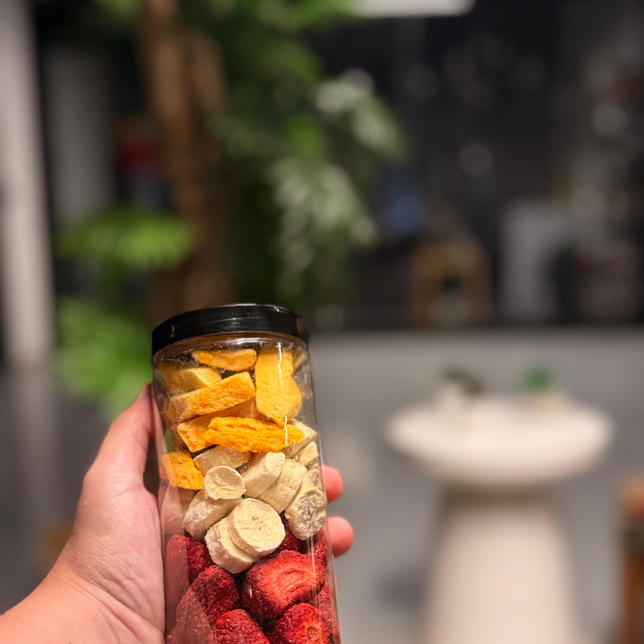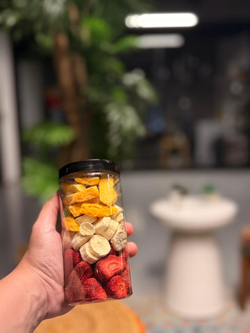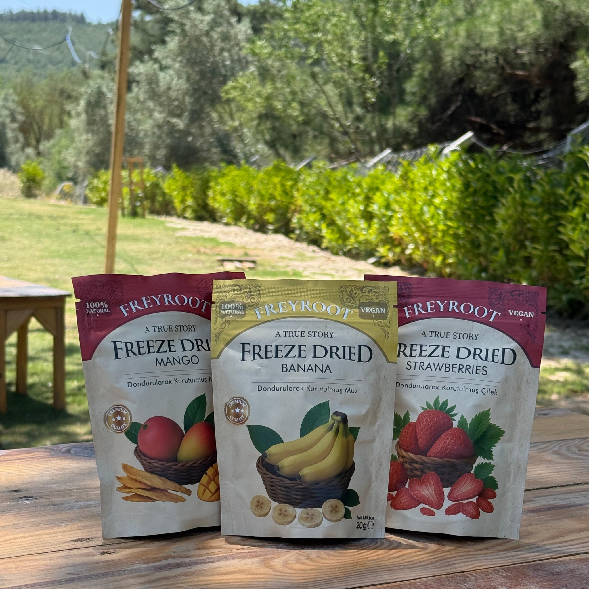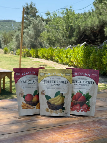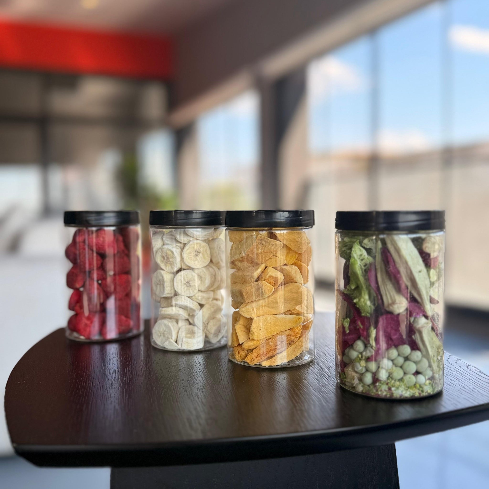 Bu yöntemle meyveler önce dondurulur, ardından vakum altında içlerindeki su buharlaştırılarak çıkarılır. Böylece şekil, renk, aroma ve besin değerleri korunur. Sonuç: katkısız, çıtır ve besleyici ürünler.
