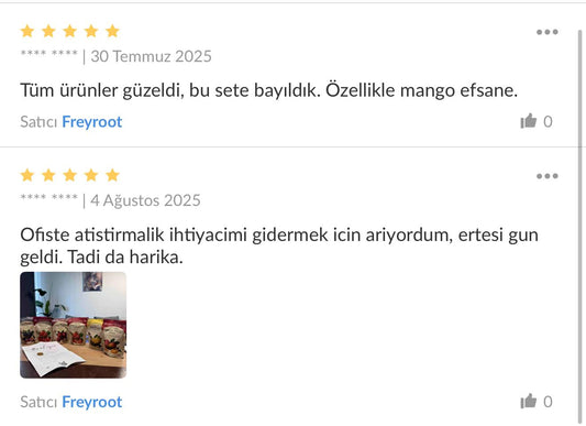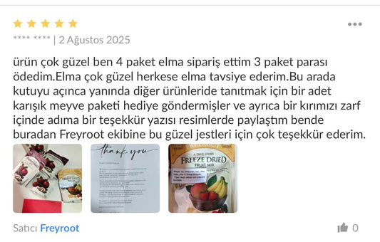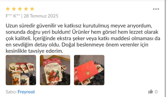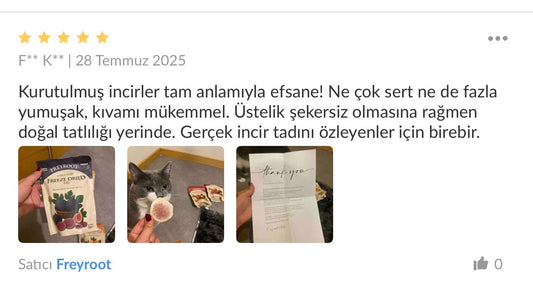 Biz ürünlerimizi anlatabiliriz ama en değerli referansımız müşterilerimiz. Onların deneyimleri, Freyroot’un güven ve lezzet hikayesini en iyi şekilde özetliyor.