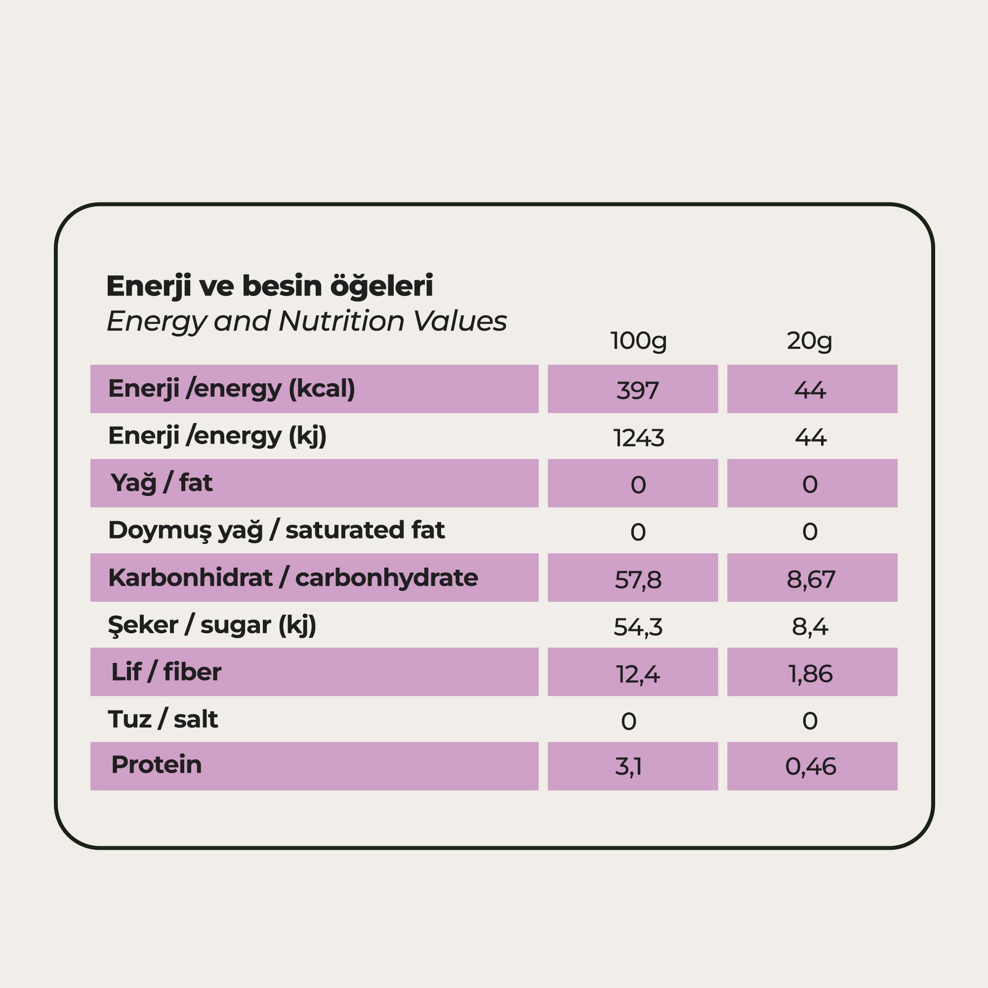 Doğal tatlılığı ve yoğun aromasıyla hem gün içinde enerji verir hem de sağlıklı bir atıştırmalık alternatifi sunar. Glutensiz ve vegan yapısıyla her yaştan insan için güvenle tüketilebilir. Çantanızda, ofiste ya da spor sonrası yanınızda taşıyabileceğiniz pratik ve lezzetli bir seçenektir.